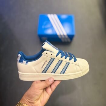 Superstar 19 White Blue sneakers bring a clean look with smooth daily comfort. The white base feels fresh and easy to match. The blue accents add a cool contrast without being loud.
